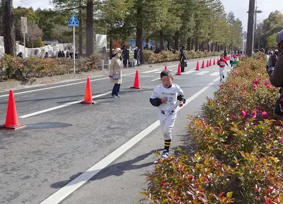 その後は期待?の5年生も半分入った6年生チーム。スタートではユウト1もヤル気満々だったね。ユウト1はソウマより早く体育館横に帰って来たが、ソウマの2番手のユウスケが追い上げてユウト13とほぼ並んでいる。この時でも先頭とはかなり開いていたと思う。